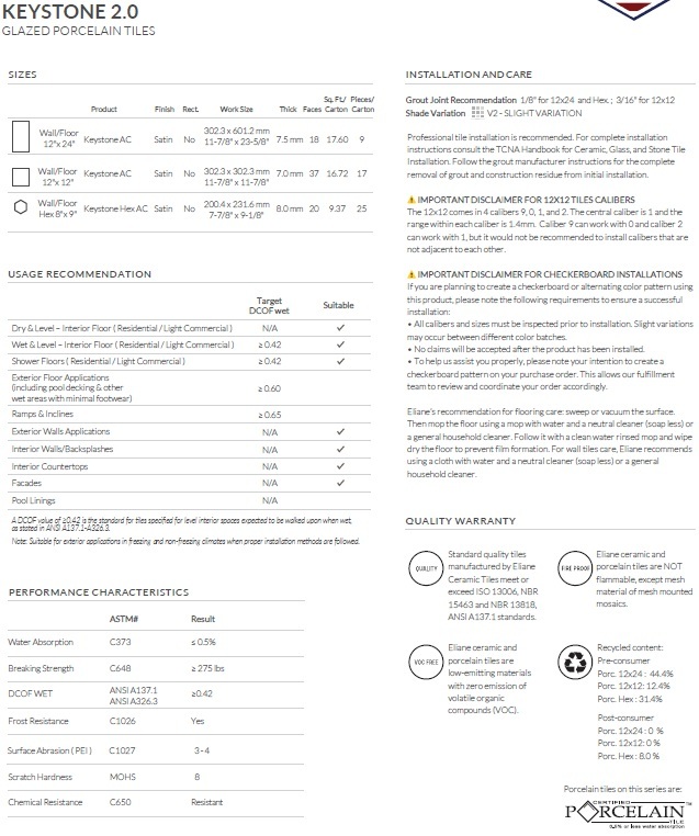 Design-forward and versatile, Keystone 2.0 is offered in both 12×24 and 12×12 sizes, making it an ideal choice for custom checkerboard and mixed-format layouts designers love. Made in the USA with a soft satin finish for floors, walls, and more.
